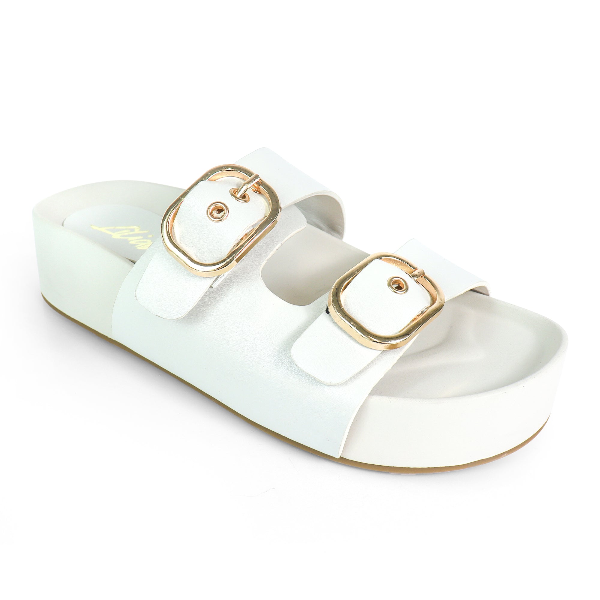 LUK-1 DUO BUCKLE WEDGE SANDAL OFF WHITE