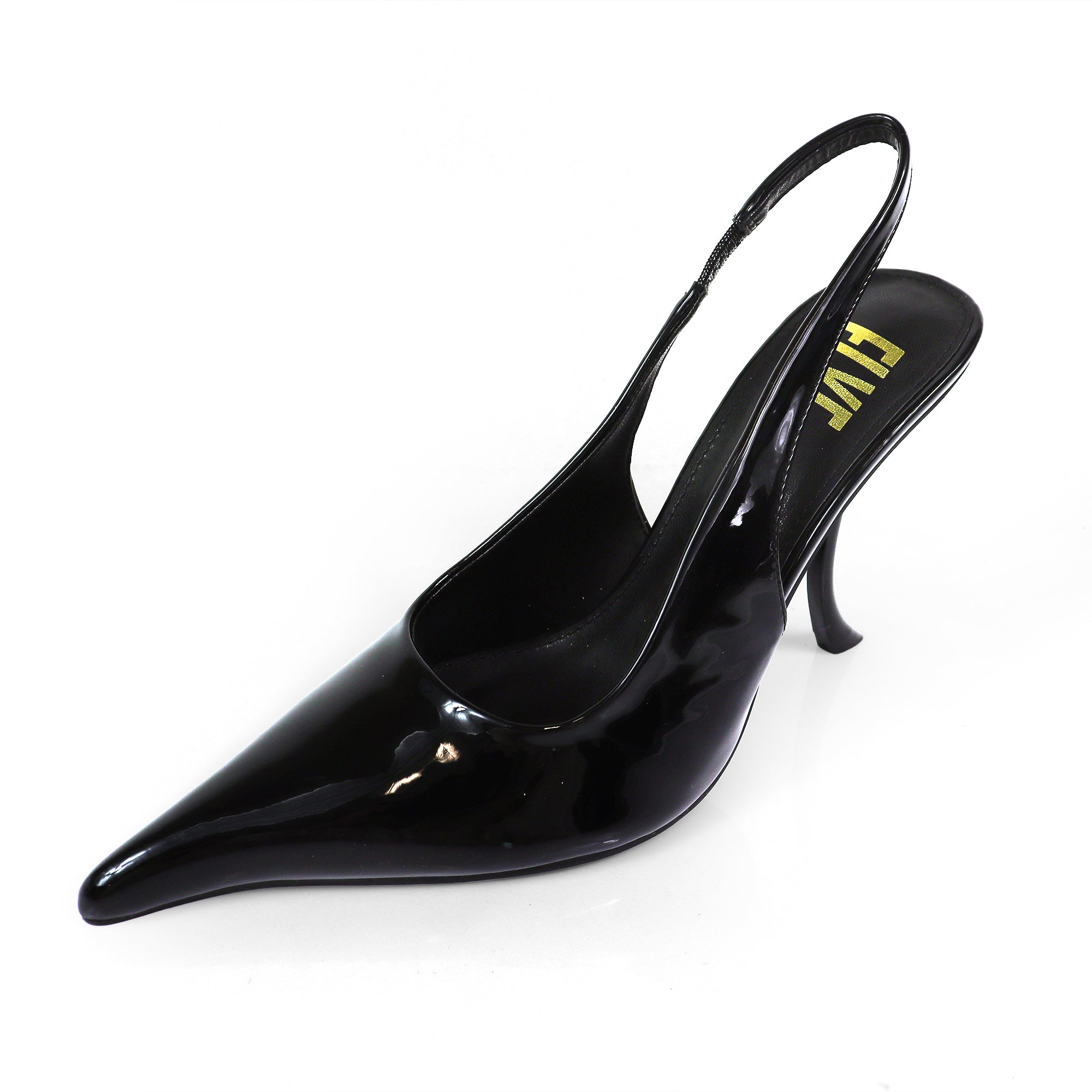 STUZZY-1 POINTED TOE SLINGBACK CURVE HEEL BLACK