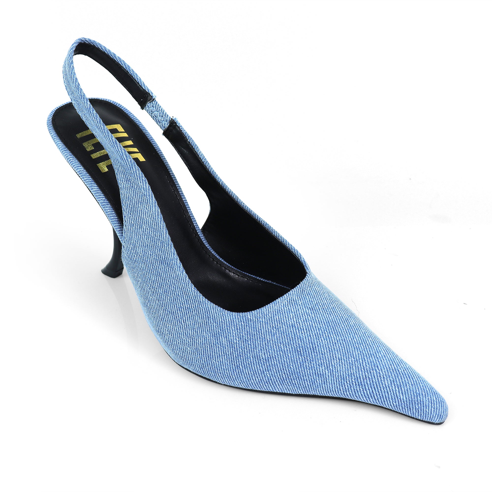STUZZY-1 POINTED TOE SLINGBACK CURVE HEEL DENIM