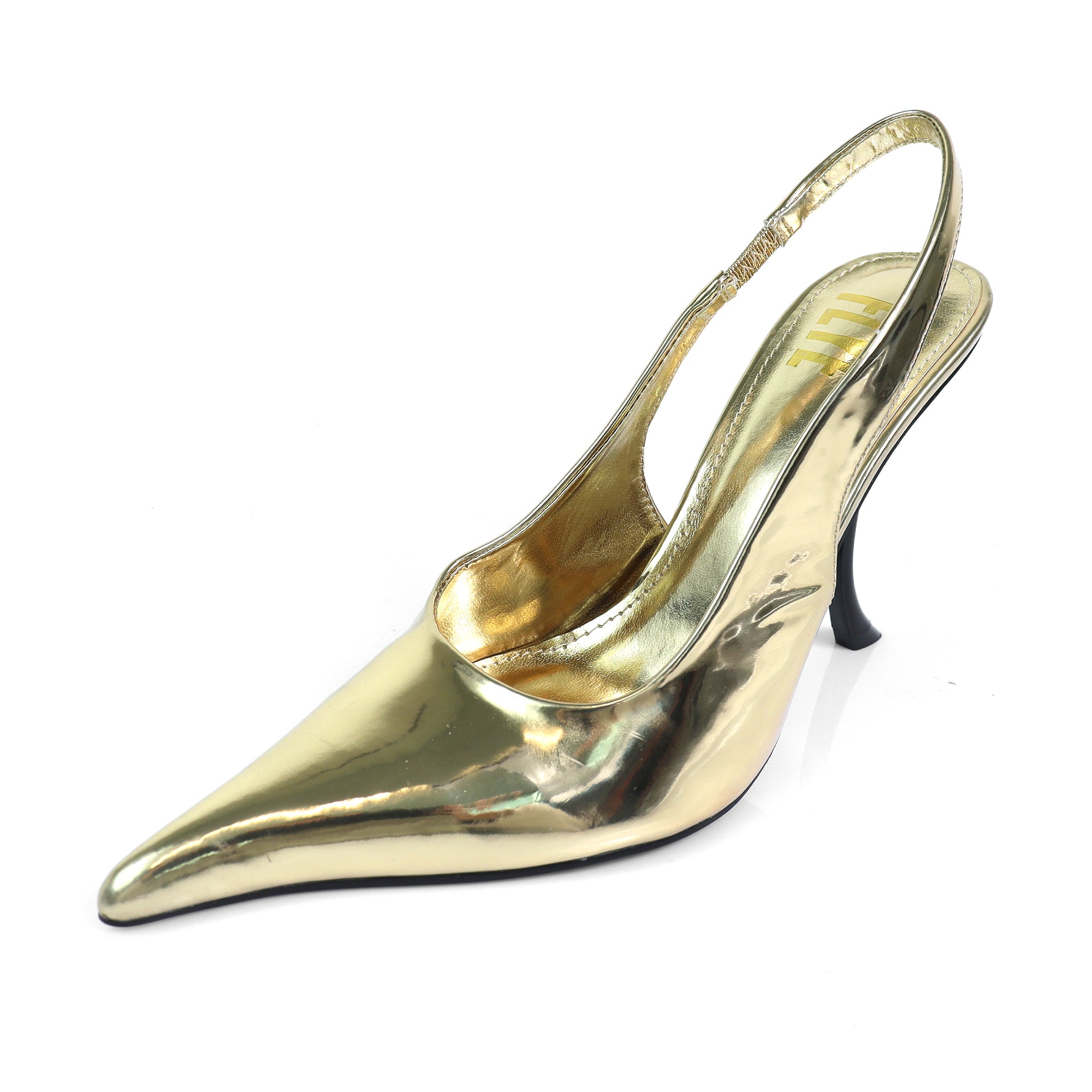 STUZZY-1 POINTED TOE SLINGBACK CURVE HEEL GOLD