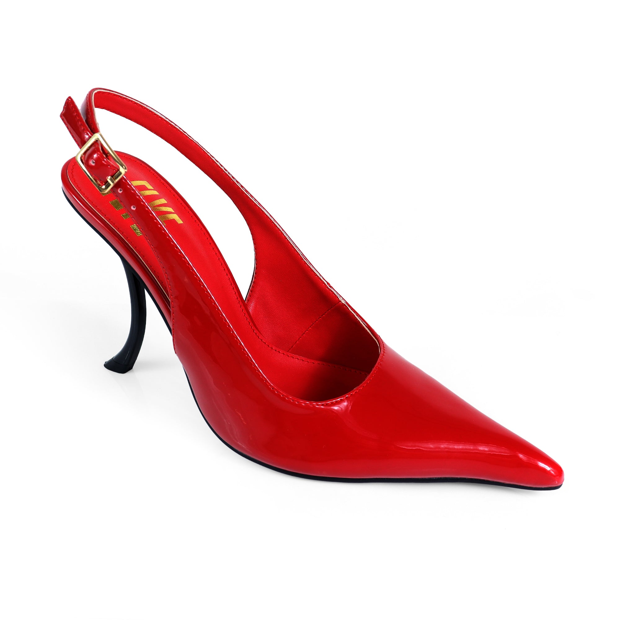 STUZZY-1 POINTED TOE SLINGBACK CURVE HEEL RED